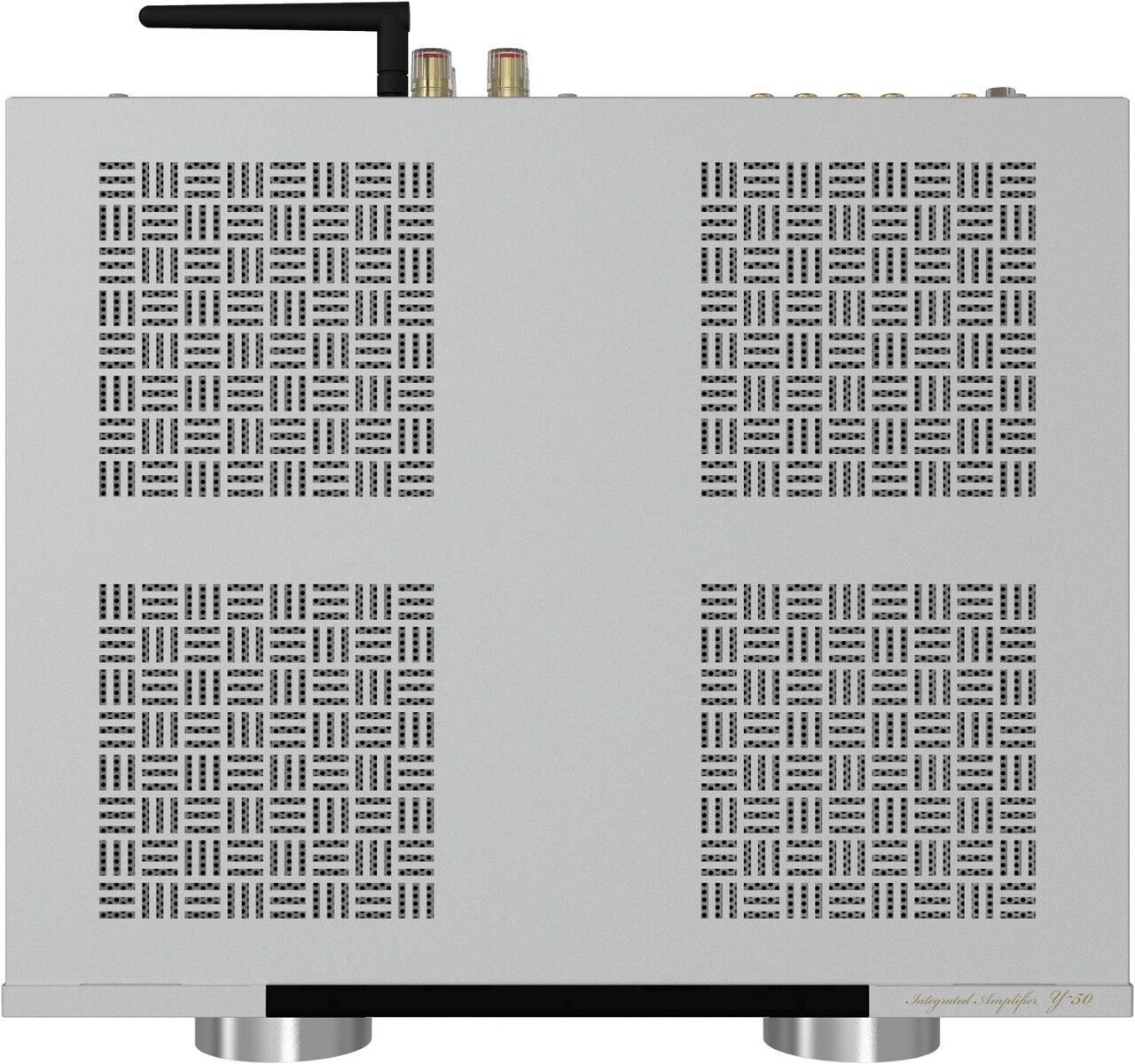 Mit einem kompromisslosen Anspruch an handwerkliche Qualität ist der Y-50 mit hochwertigen, audiophilen Lautsprecheranschlüssen ausgestattet. Die Aluminium- Frontplatte verleiht dem Gerät nicht nur eine elegante High-End-Optik, sondern sorgt auch für außergewöhnliche Stabilität und hilft, lautsprecherbedingte Vibrationen zu minimieren, die die Klangqualität beeinträchtigen könnten. Die markant gemusterte, belüftete San-Kuzushi-Topplatte versteht sich als dezente Hommage an die japanische Tradition.